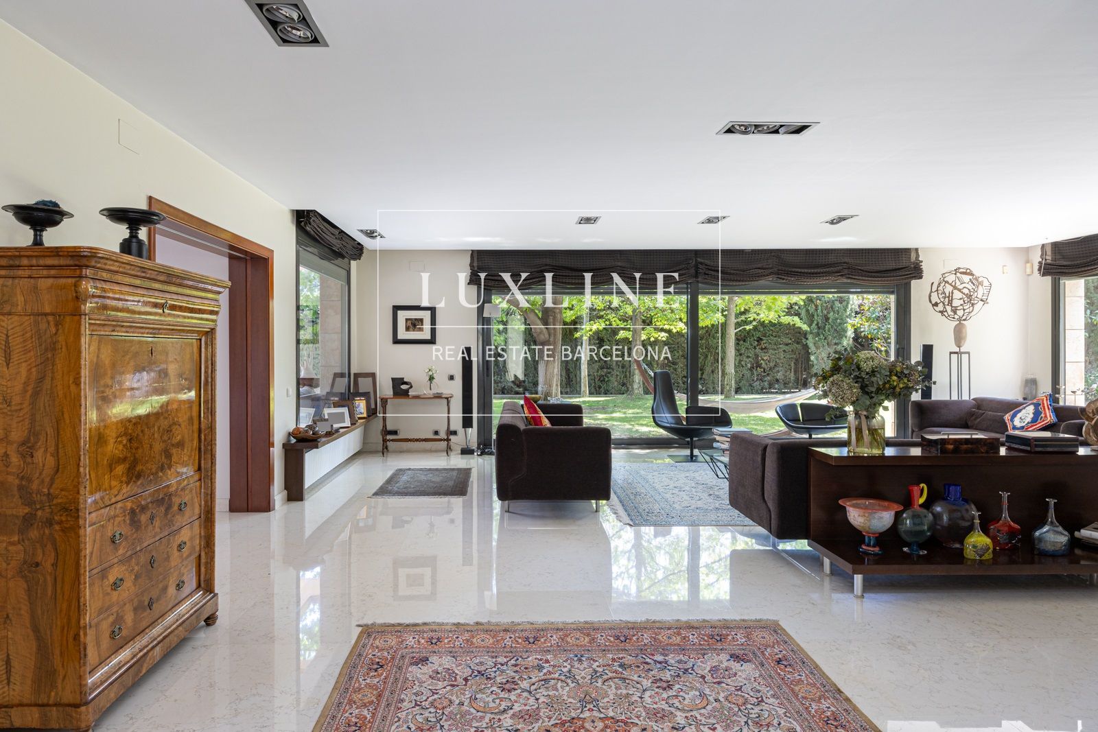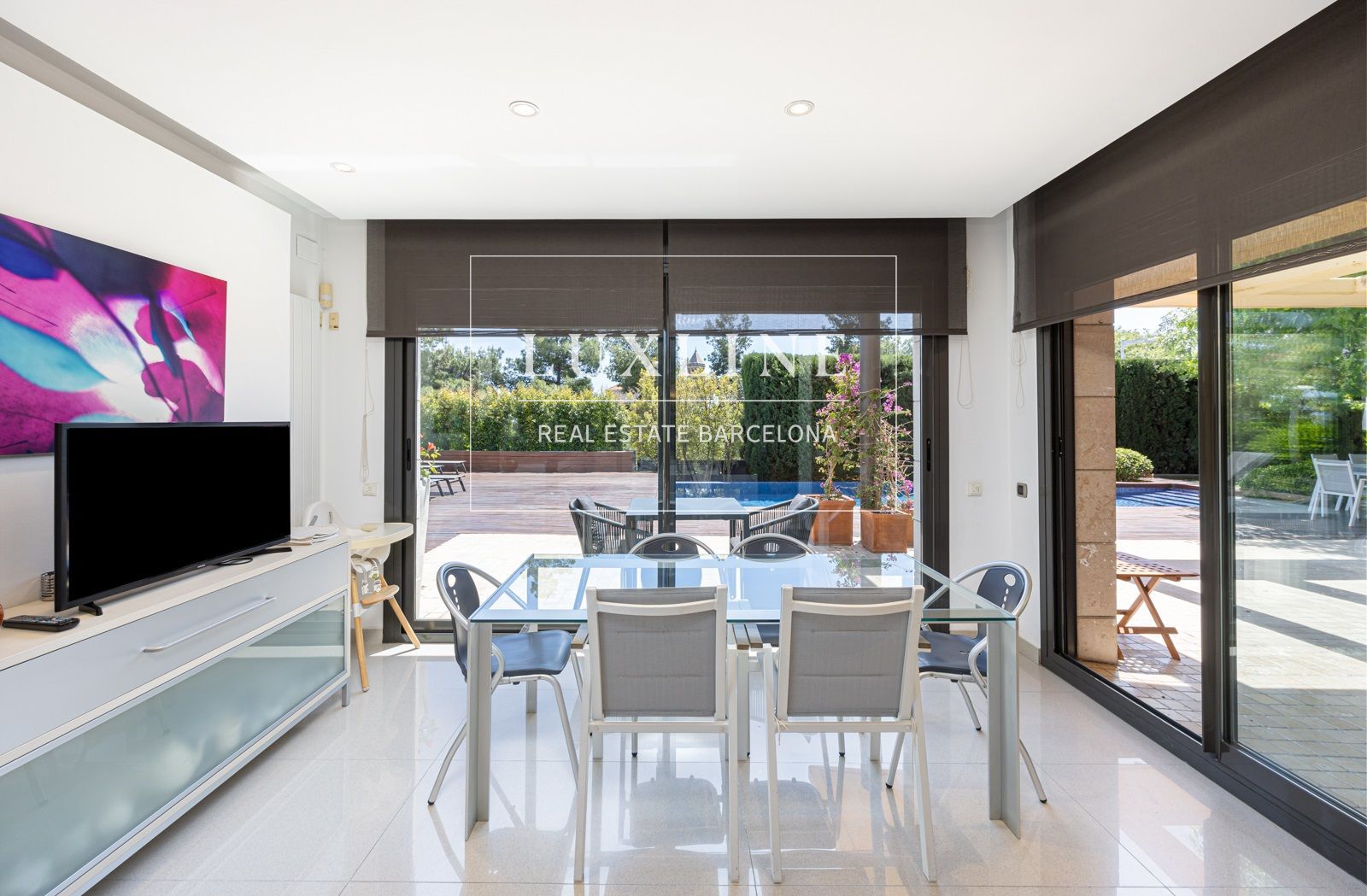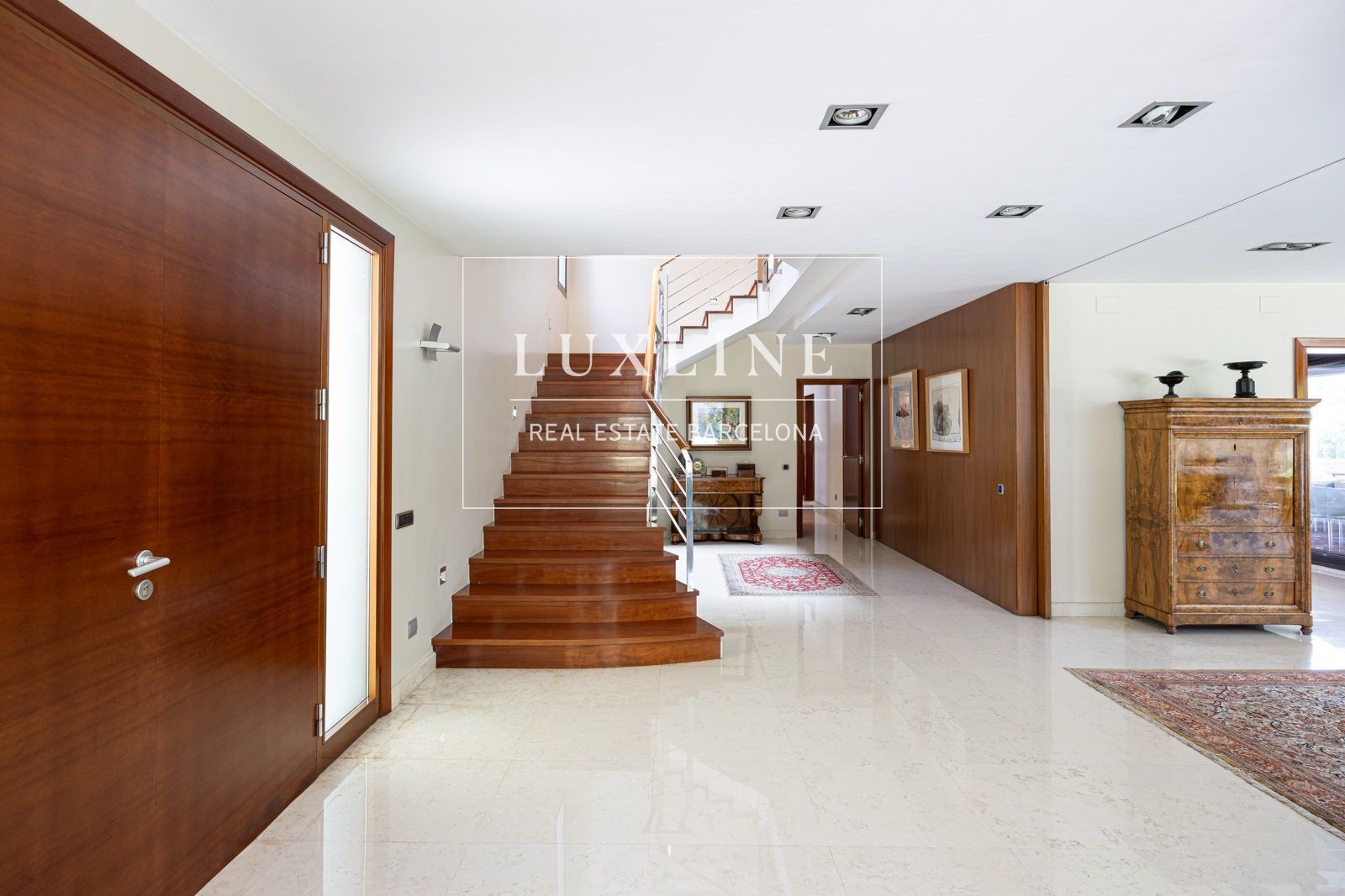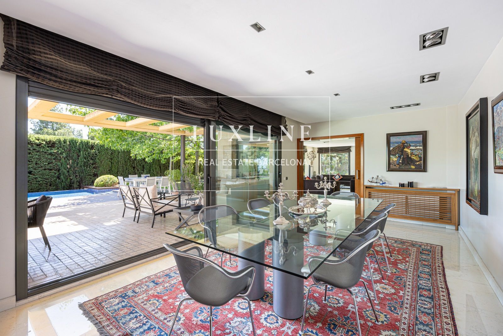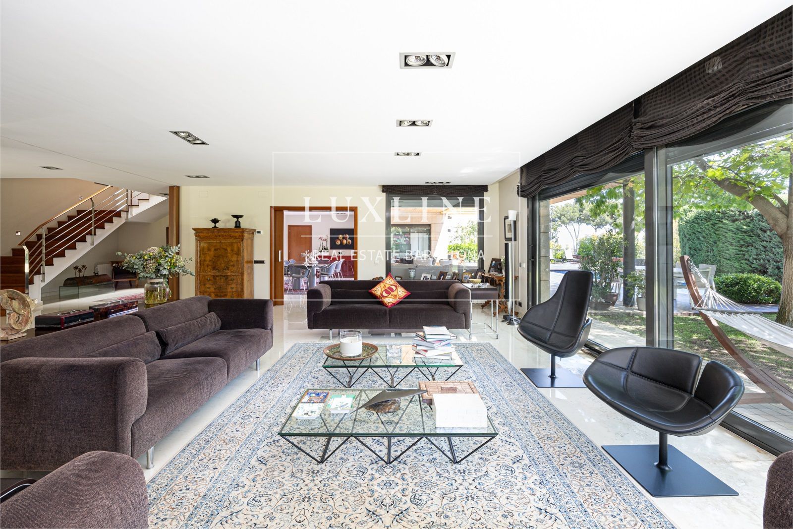 Al entrar, serás recibido por un espacioso hall que te conduce a los distintos espacios de esta impresionante vivienda. El salón principal, bañado por la luz natural que entra por sus amplios ventanales, ofrece vistas espectaculares al exuberante jardín y la piscina.