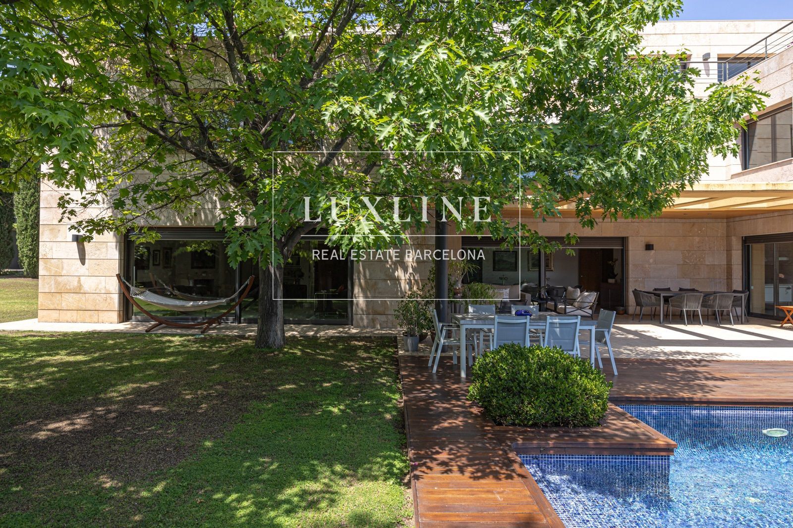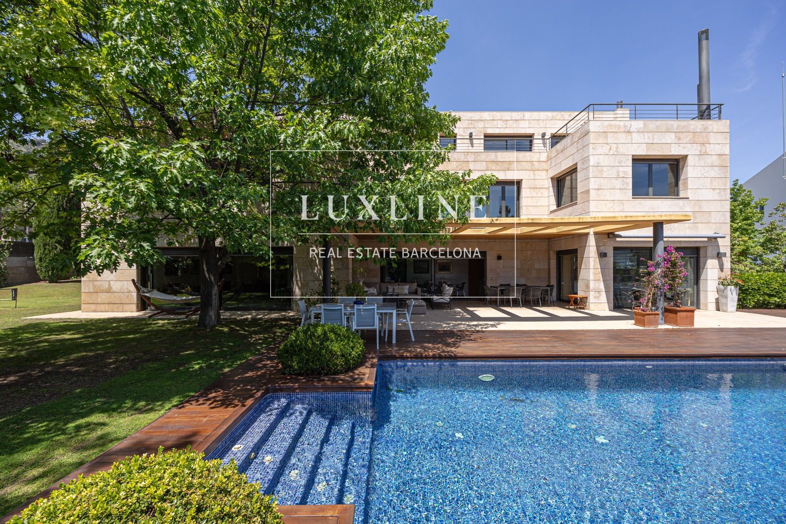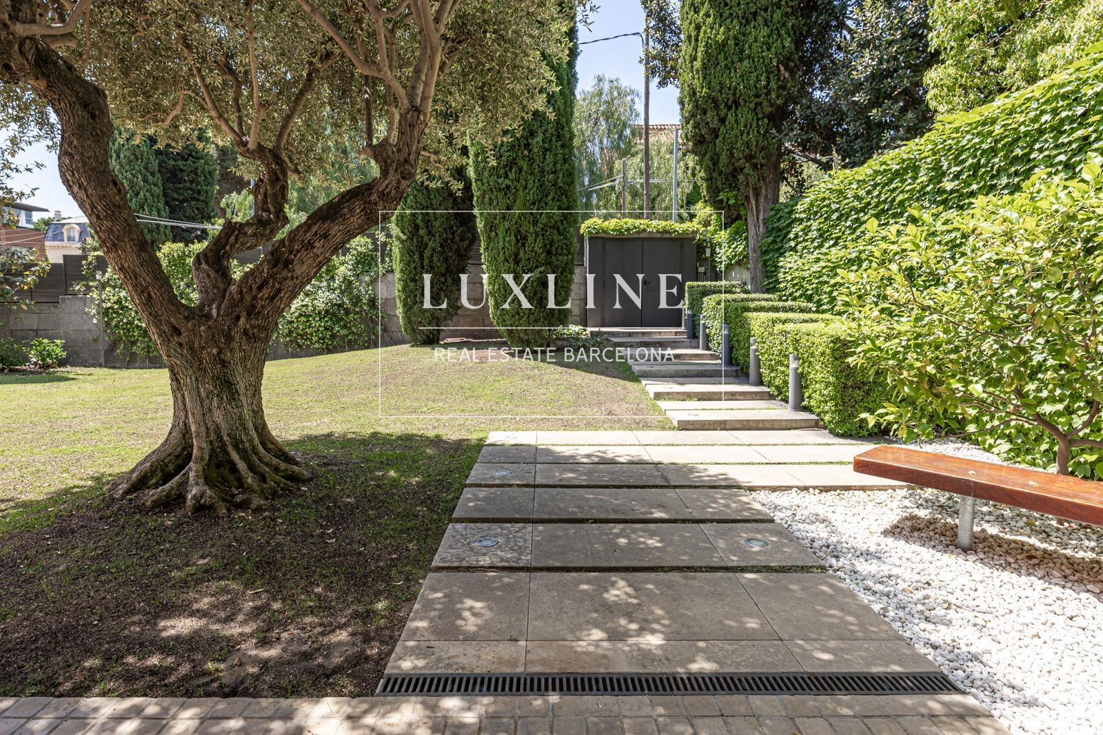 El exterior es un verdadero paraíso, con un jardín meticulosamente cuidado que ofrece un oasis de tranquilidad en medio del bullicio urbano, junto a una piscina perfecta para relajarse durante los días soleados.